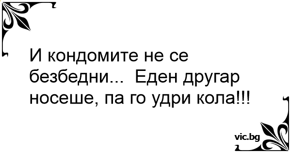 И кондомите не се безбедни... Еден другар носеше, па го удри кола!!!