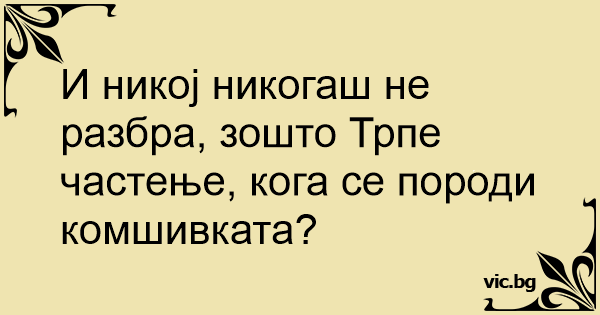 И никој никогаш не разбра, зошто Трпе частење, кога се породи комшивката?