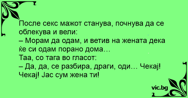 След секс мъжът става, почва да се облича и казва: