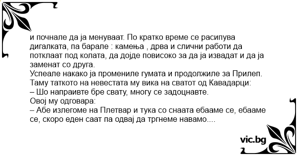 – Абе излегоме на Плетвар и тука со снаата ебааме се, ебааме се, скоро еден саат па одвај да тргнеме навамо.
