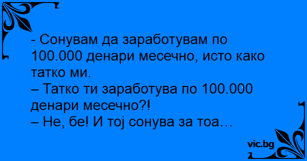 - Мечтая си и аз, като баща ми, да стана милионер.. - Баща ти милионер ли е? - Не, и той така си мечтае...