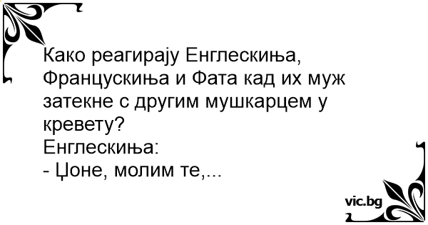 Како реагирају Енглескиња, Францускиња и Фата кад их муж затекне с другим мушкарцем у кревету?