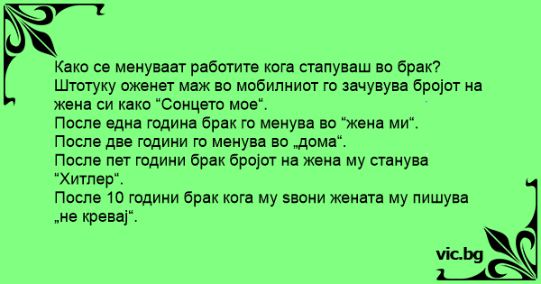 После 10 години брак кога му ѕвони жената му пишува „не кревај“.