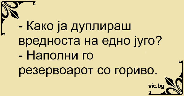 – Vet du hvordan man fordobler verdien i en Lada? – Fyller opp tanken.