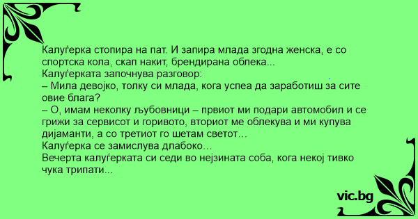 – Мила девојко, толку си млада, кога успеа да заработиш за сите овие блага?