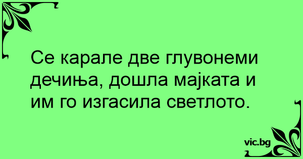 Се карале две глувонеми дечиња, дошла мајката и им го изгасила светлото.