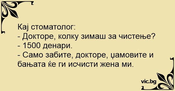 - Само забите, докторе, џамовите и бањата ќе ги исчисти жена ми.