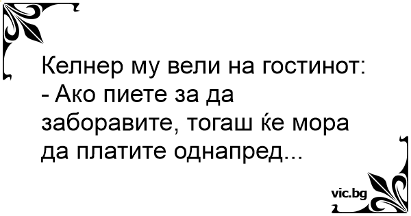 - Aко пиете за да заборавите, тогаш ќе мора да платите однапред...