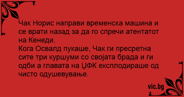 Чак Норис направи временска машина и се врати назад за да го спречи атентатот на Кенеди.