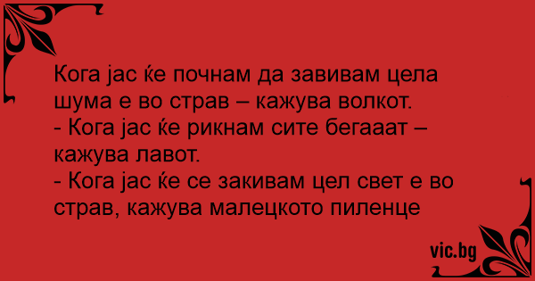Кога јас ќе почнам да завивам цела шума е во страв – кажува волкот.