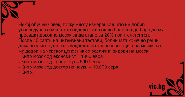 - Кило мозок од економист – 1000 евра.