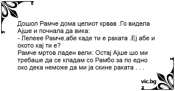 - Лелеее Рамче,абе каде ти е раката .Еј абе и окото кај ти е?