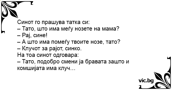 – Тато, подобро смени ја бравата зашто и комшијата има клуч…