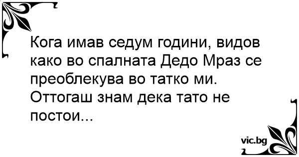 Кога имав седум години, видов како во спалната Дедо Мраз се преоблекува во татко ми. Оттогаш знам дека тато не постои...