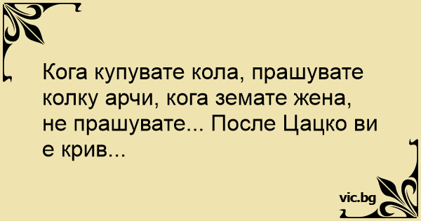 Кога купувате кола, прашувате колку арчи, кога земате жена, не прашувате... После Цацко ви е крив...