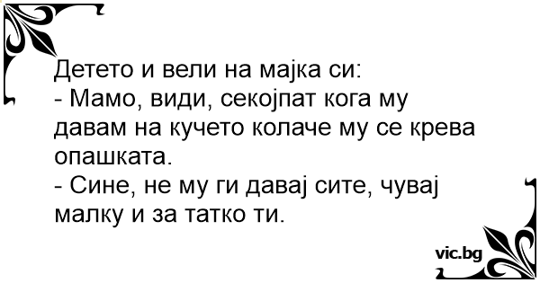 - Мамо, види, секојпат кога му давам на кучето колаче му се крева опашката.