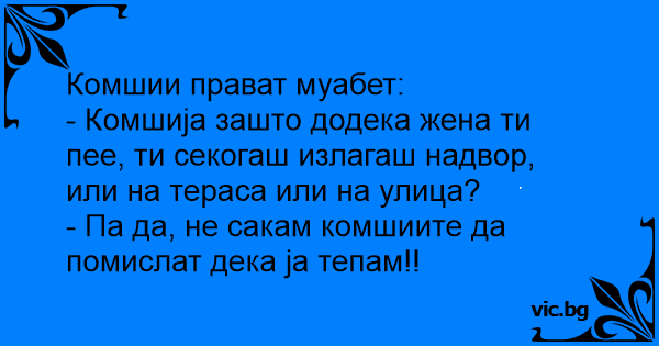 - Комшија зашто додека жена ти пее, ти секогаш излагаш надвор, или на тераса или на улица?