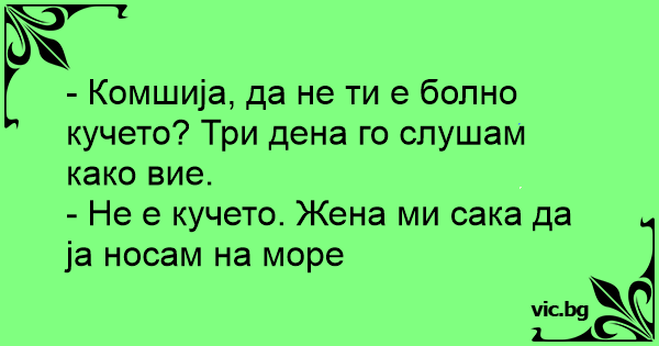 - Комшиjа, да не ти е болно кучето? Три дена го слушам како вие.