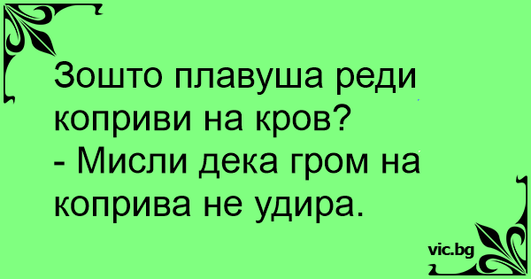 - Мисли дека гром на коприва не удира.