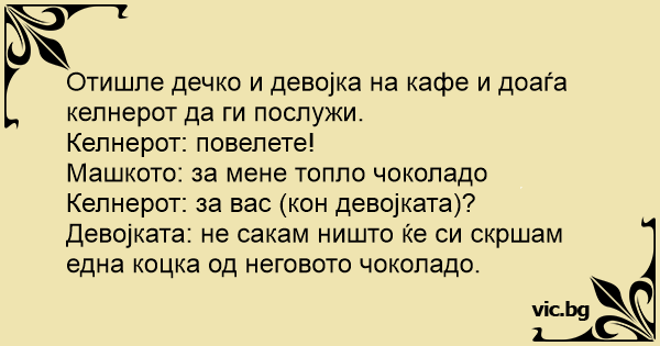 Девојката: не сакам ништо ќе си скршам една коцка од неговото чоколадо.