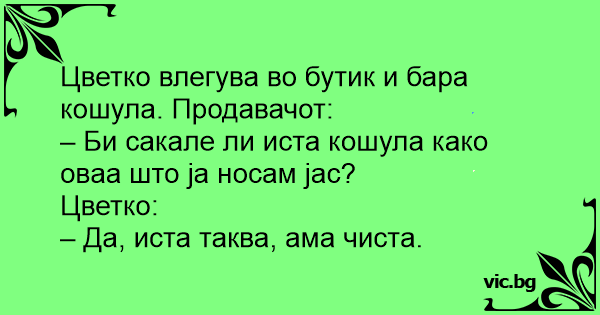Цветко влегува во бутик и бара кошула. Продавачот: