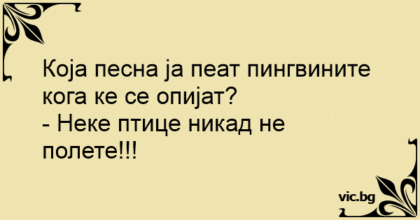 Која песна ја пеат пингвините кога ке се опијат?