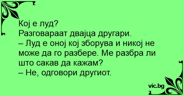 – Луд е оној кој зборува и никој не може да го разбере. Ме разбра ли што сакав да кажам?