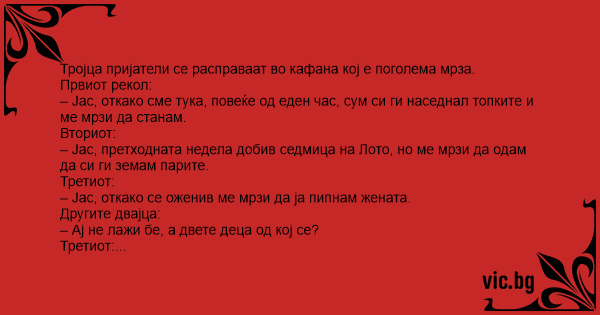 Тројца пријатели се расправаат во кафана кој е поголема мрза.