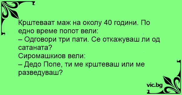 – Дедо Попе, ти ме крштеваш или ме разведуваш?