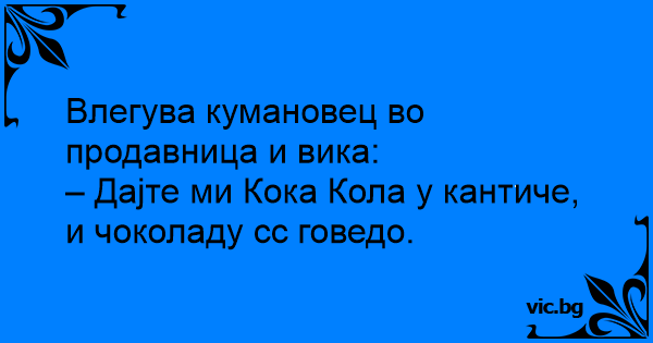 – Дајте ми Кока Кола у кантиче, и чоколаду сс говедо.