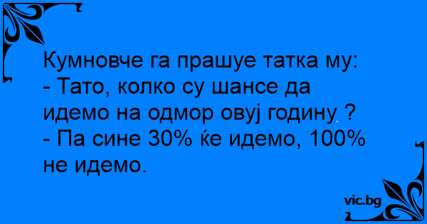 - Тато, колко су шансе да идемо на одмор овуј годину ?