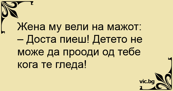 – Доста пиеш! Детето не може да прооди од тебе кога те гледа!