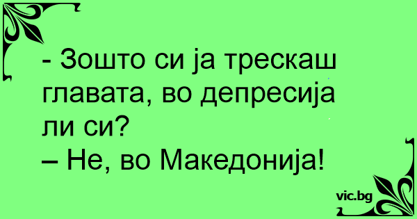 - Зошто си ја трескаш главата, во депресија ли си?