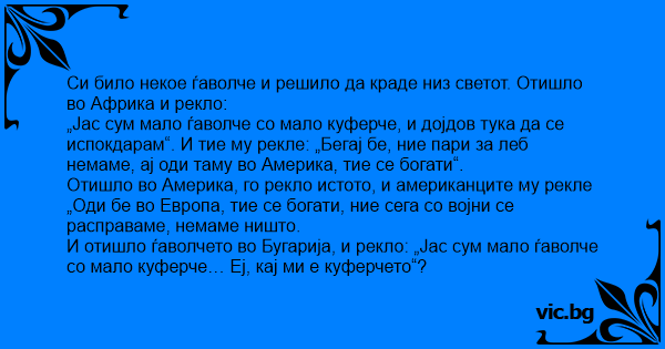 И отишло ѓаволчето во Бугарија, и рекло: „Јас сум мало ѓаволче со мало куферче… Еј, кај ми е куферчето“?