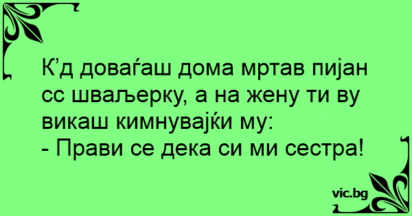 К’д доваѓаш дома мртав пијан сс шваљерку, а на жену ти ву викаш кимнувајќи му: