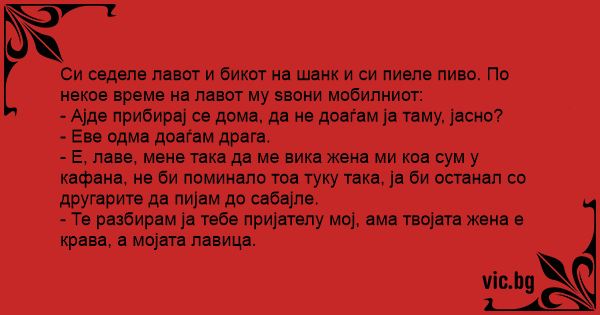 Бикот и лавот си прават муабет и по некое време лавот вели: