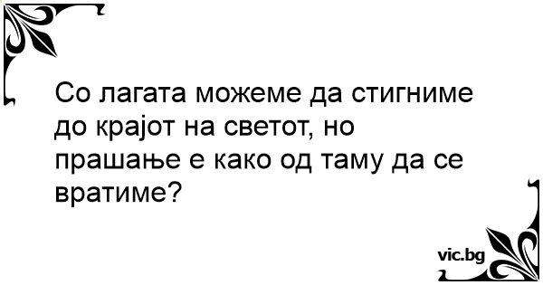 Со лагата можеме да стигниме до крајот на светот, но прашање е како од таму да се вратиме? 0 0 0 Вицеви со изреки