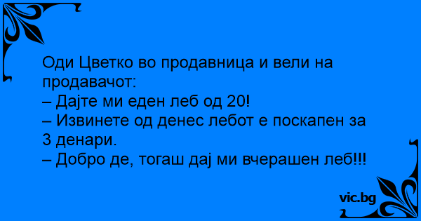 – Добро де, тогаш дај ми вчерашен леб!!!