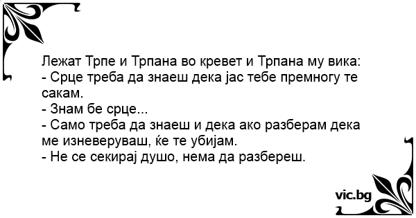 Лежат Трпе и Трпана во кревет и Трпана му вика: