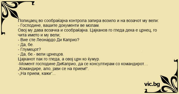 Ateina negras prie dangaus vartų. Šv. Petras klausia: - Sakyk savo vardą. Negras: - Leonardo DiCaprio. - Sakyk tikrą savo vardą,- supyko Petras. - Taigi sakiau Leonardo DiCaprio,- atkerta negras....