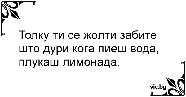 Толку ти се жолти забите што дури кога пиеш вода, плукаш лимонада.