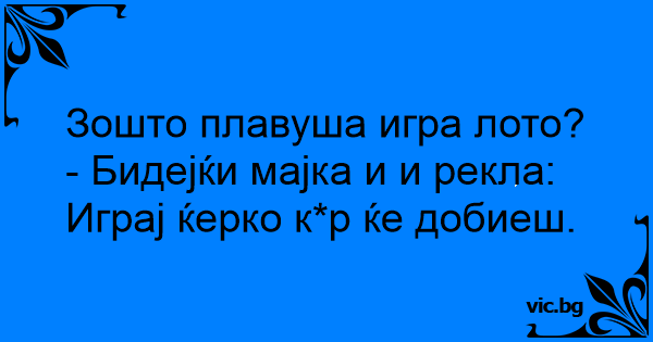 - Бидејќи мајка и и рекла: Играј ќерко kуp ќе добиеш.