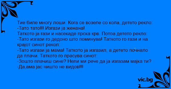 -Тато изгази го дедоно што поминува! Таткото го гази и на крајот синот рекол:
