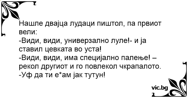 -Види, види, универзално луле!- и ја ставил цевката во уста!