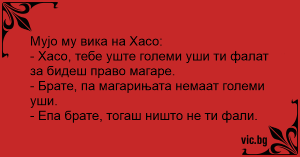 - Хасо, тебе уште големи уши ти фалат за бидеш право магаре.