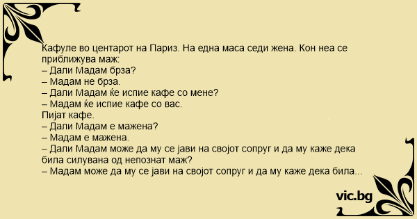 – Мадам може да му се јави на својот сопруг и да му каже дека била силувана од непознат маж 6 пати.