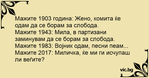 Мажите 1903 година: Жено, комита ќе одам да се борам за слобода.