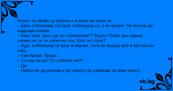 – Ајде, соблекувај се кога ти велам. Сега ќе видиш што е вистински cekc.