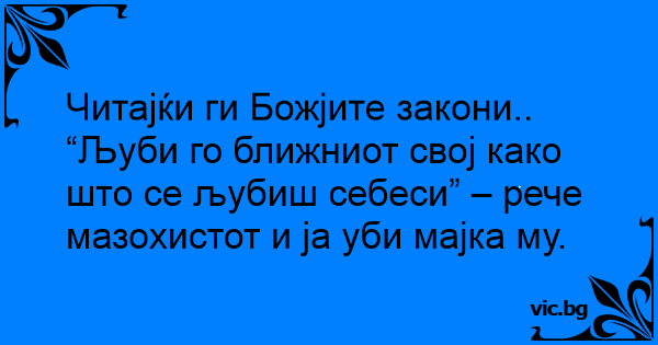“Љуби го ближниот свој како што се љубиш себеси” – рече мазохистот и ја уби мајка му.