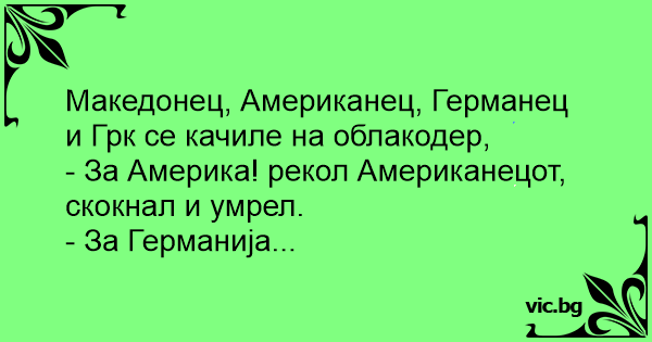 Македонец, Американец, Германец и Грк се качиле на облакодер,